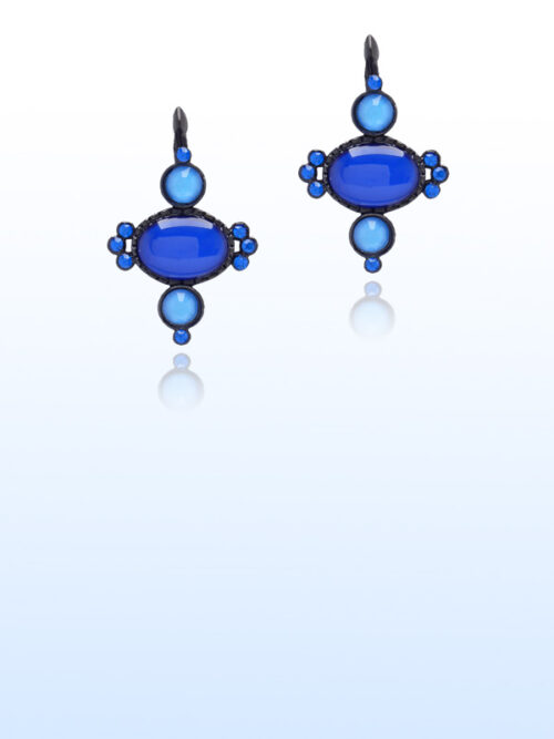 Finition: Métal trempé dans un bain d’argent oxydé noir mat. Un cabochon lisse peint à la main et des strass en cristal.