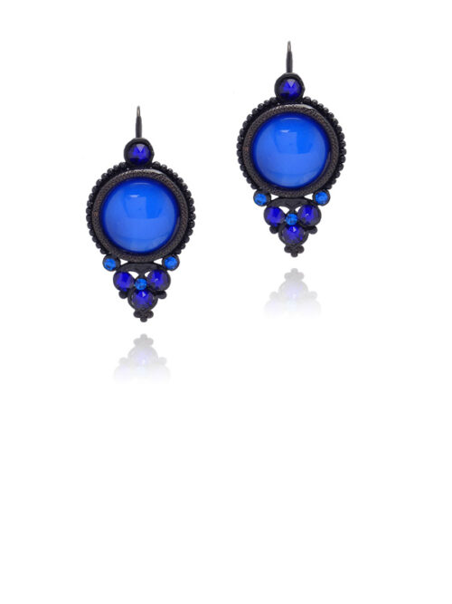 Ces boucles d’oreilles noires mates ornées de strass en Cristal bleu et un cabochon lisse en verre peint à la main complèteront toutes vos tenues. Elles peuvent se porter à chaque moment de la journée et toute l’année. C’est un must-have que nous créons chaque année avec de nouvelles couleurs.