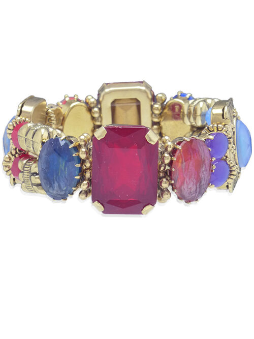 Ce magnifique bracelet résultant de notre savoir faire est plongé dans un bain d’or fin 24 carats. Des cabochons en cristal d’Autriche sont teintés dans notre atelier à Perpignan. Des perles à facettes en cristal de chez Swarovski et des perles en résines métallisées sont associés à ce merveilleux ensemble. Un équilibre original que vous pouvez porter à tout moment de la journée. Il existe dans différents coloris pour vous accompagner dans toutes les situations